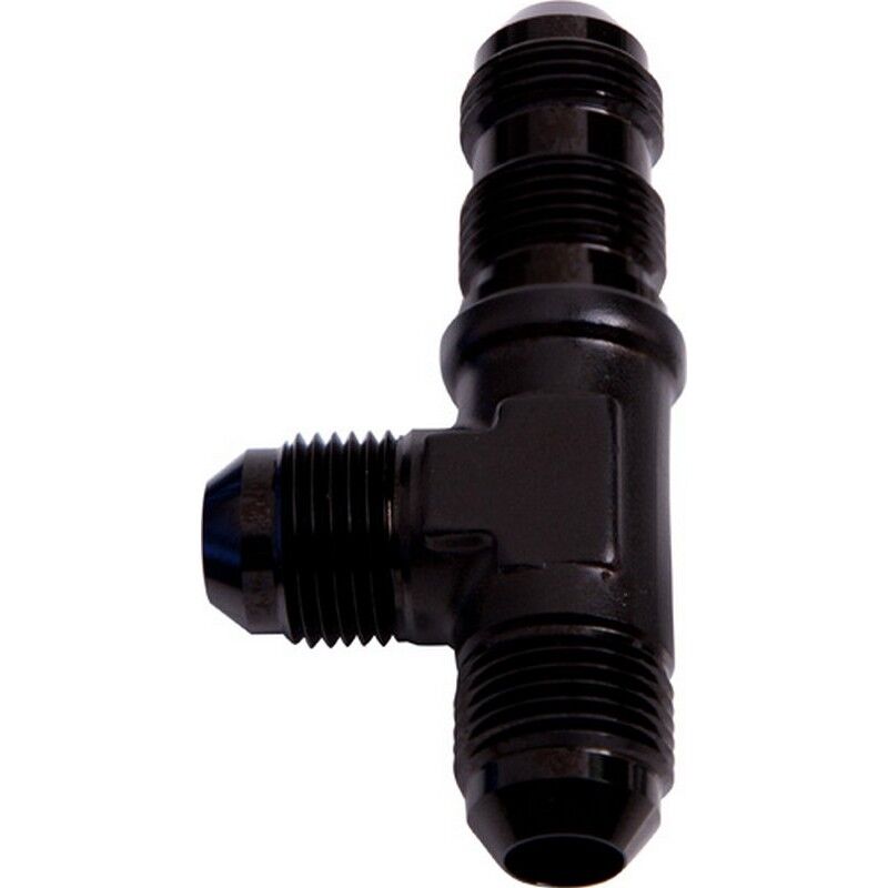 TheseAN tee bulkhead fittings allowyou to easily and safely run you fuel/oil/water lines through a panel or firewall without worrying about rubber grommets and wearing through the hose. This is a bulkhead T-Piece where the Bulkhead section is "On The Run" and all ends are the same AN male flare size. Available in sizesfrom -3 all the way through to-20.
