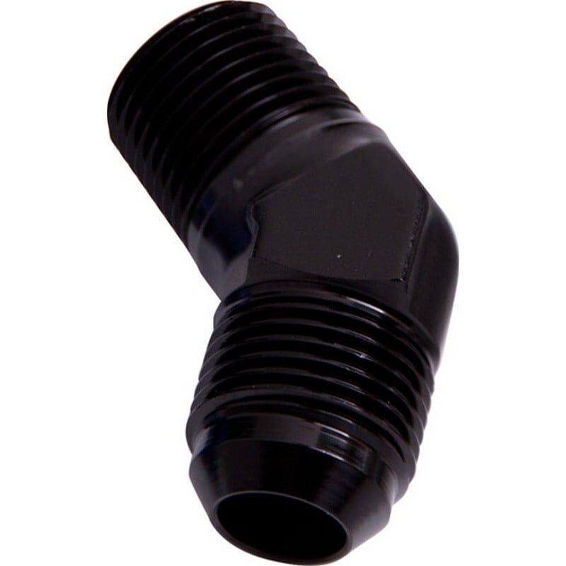 Male to Male full flow NPT to AN adapter. Adapt from and NPT thread to AN flare with a 45 degree bend. Various sizes available.