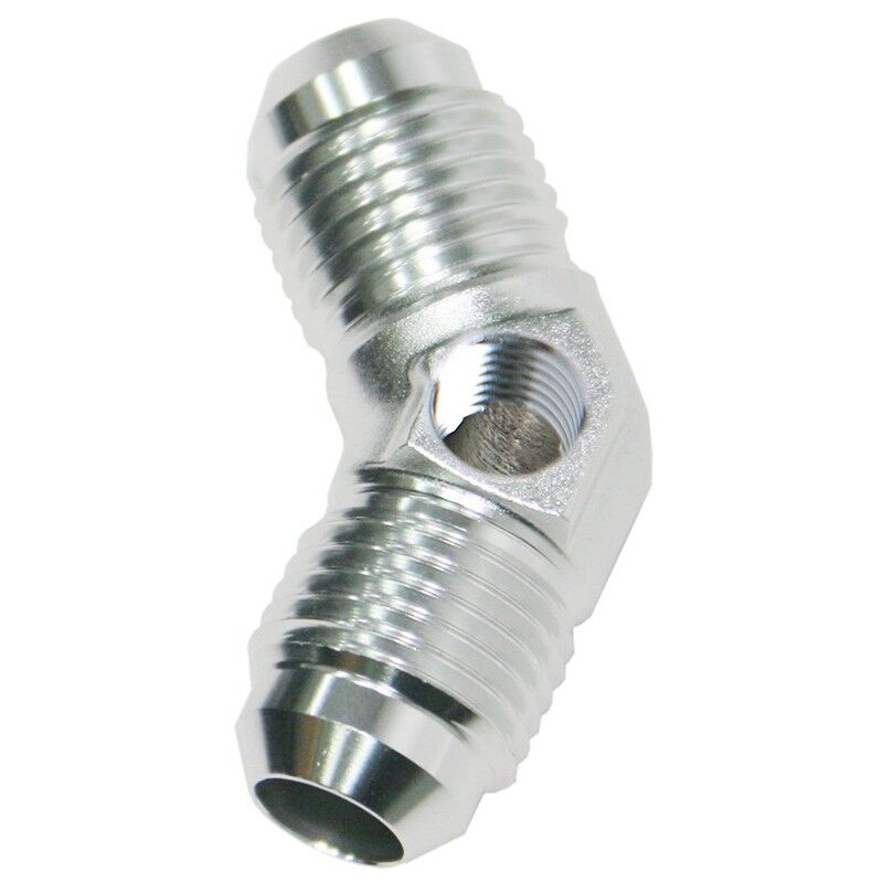 Male to Male forged AN union. Allows you to connect two female hose ends with a 45degree bend.