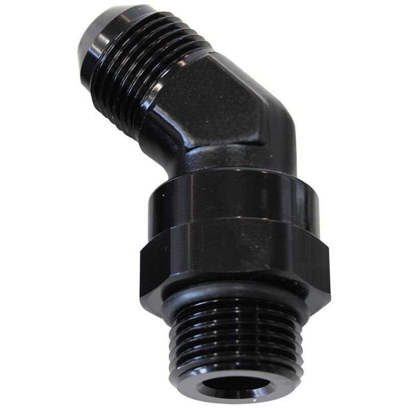 Male to Male full flow ORB to AN adapter. Adapt from an ORB thread to AN flare with a 45 degree bend and full 360 degree swivel. Various sizes available.