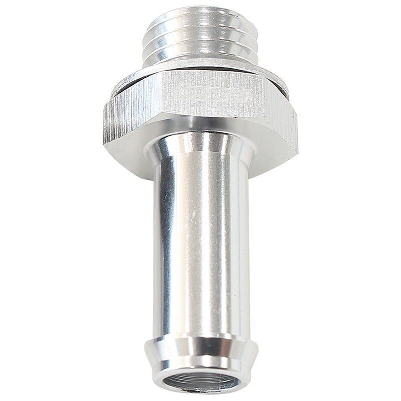Aluminium straight metric to barb adapter. Includes aluminium crush washer for metric thread seal.
