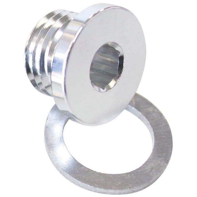 Aluminium Metric male port plug with internal Hex head. These plugs will seal a femaleMetric fitting with an included aluminium crush washer.