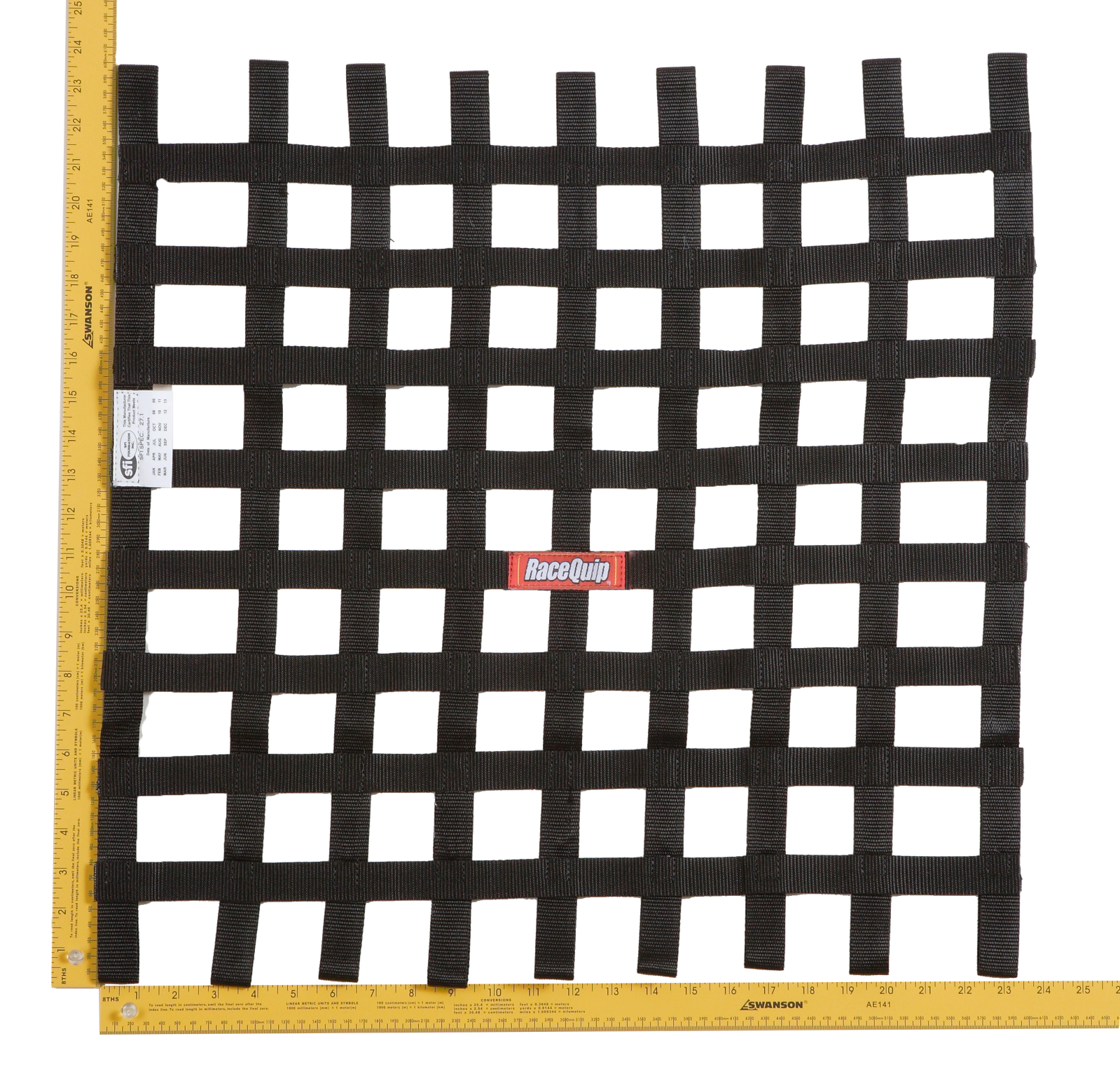 RaceQuip SFI 27.1 Rated Ribbon Window Nets are constructed of heavy-duty 1" polypropylene webbing and nylon thread for maximum durability. RaceQuip utilizes a jig-built construction technique to ensure consistent size, shape, and fit. This auto racing window net is a very unique size (15" High X 18" Wide) and satisfies many applications where a custom racecar window net would be needed. SFI 27.1 certified and available in black.