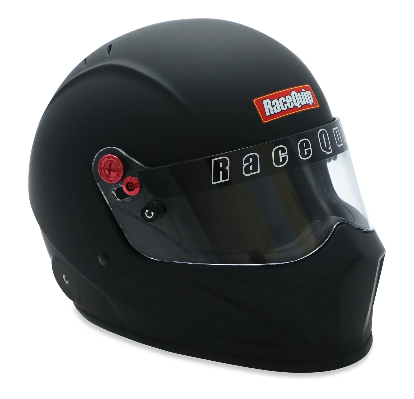 RaceQuip's VESTA20 full face Snell SA2020 rated helmet is a bold departure from traditional auto racing helmet styling. The VESTA20 incorporates contemporary design with modern production techniques. The shell is built using composite materials placed into pressurized steel molds to achieve the best combination of light weight and strength. This innovative new helmet model features FRP Composite shell construction and a uniquely shaped chin bar to support a scalloped face shield design. Reinforced M6 threaded HANS/HNR inserts are mated to the shell along with an expanded polystyrene (EPS) liner. HANS or other Head and Neck Restraint device anchor posts (not included) can be easily attached to the outside of the helmet using the installed M6 threaded inserts. The distortion free 3mm polycarbonate face shield features a molded thumb catch, red anodized aluminum pivot kit, hand ratcheting Tear Off posts, and a silicone eye port gasket to seal out dust and dirt. A wide eye port provides good peripheral vision and allows the use of personal eyewear. Included with the helmet are an extra set of thicker cheek pads to allow a customized fit. The Snell SA rating means that the interior, paint, and Kevlar chin strap are all fire-retardant.