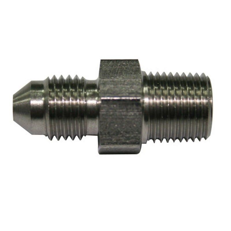 Aeroflow Performance have designed this304 stainless steel 1/8" NPT to -3AN and -4AN for applications such as turbochargers and radiator necks. Being a 304 stainless steel it can withstand extremeheat and is high strength compared to the standard alloyfitting which can break over time in racing applications.