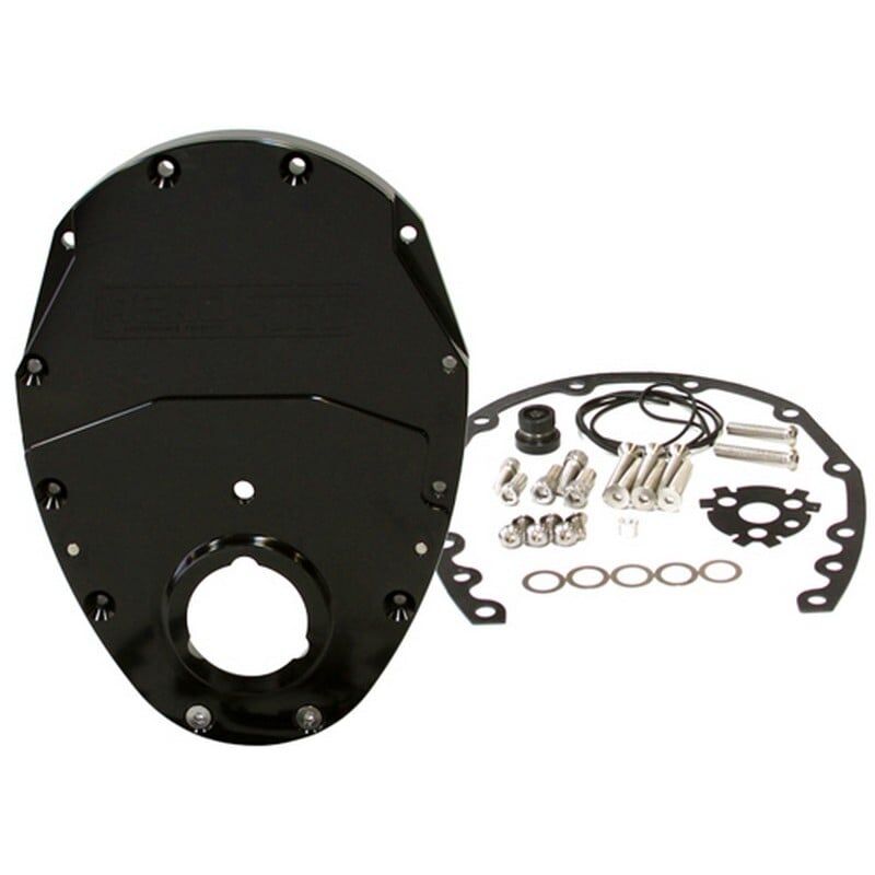 Small Block Chev 350 2-Piece Billet Timing Cover - Black Finish