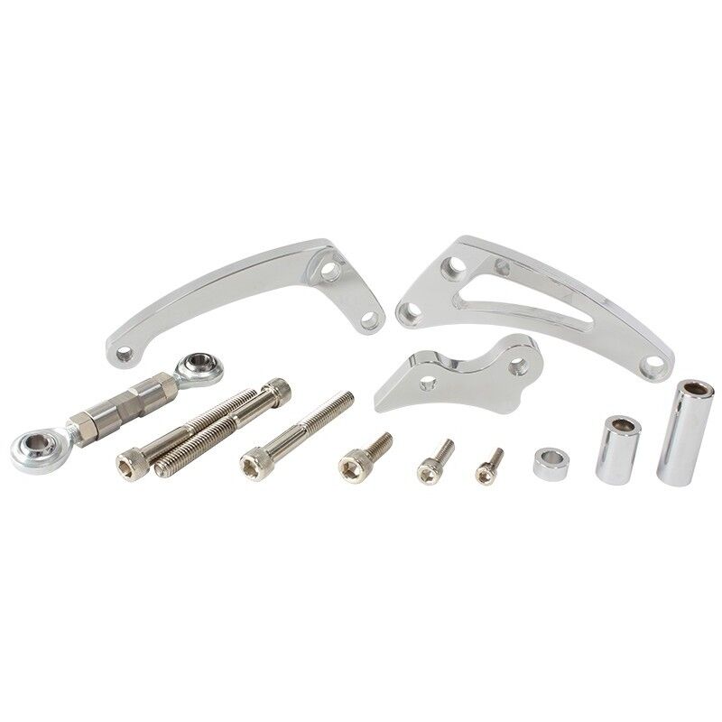 These alternator brackets are made from 6061 T6 billet aluminium and are designed to suit Small Block Chevy V8s with a Low-Mounted alternator on the left hand side (Australian Passenger Side) ofthe motor and the "Short" Water pump.