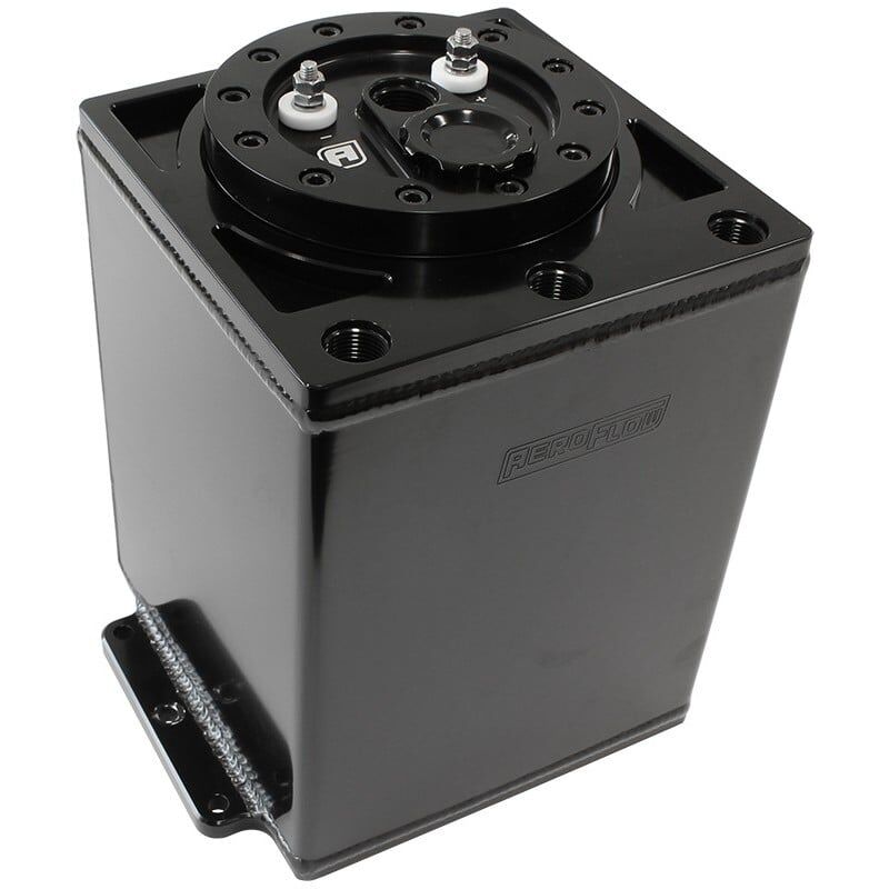 These Aeroflow Performance Surge Tanks are designed to prevent starving the fuel pumpby increasing the fuelling capability of the fuel system.It is usually installed in vehicles that potentially can experience fuel starvation dueto fuel sloshing around in an inadequately baffled fuel tank/cell. While this can occur in any vehicle when the tank is not fully filled, it is more frequent in vehicles subject to violent changes in directions such as autocross, off-road, drag racing and other types of racing that involve high g-force. The primary fuel pump in the vehicle's main fuel tank will no longer directly feed the engine. Instead, the internal fuel pump will now be used to fill and maintain the level offuel in the surge tank itself.Using a surge tank will now require new external fuel pump/s to be installed after the tank to supply fuel to theengine.