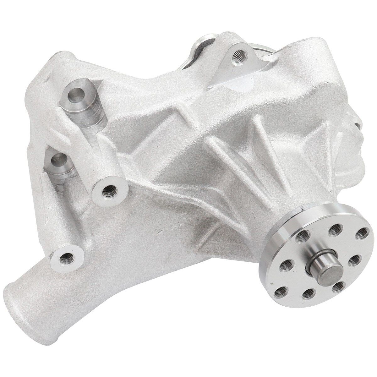 The high performance Aeroflow range of mechanical water pumps are designed for street applications. They are compatible with all O.E.M. accessories and pulleys. Made from lightweight cast aluminium which offers weight savings along with increased durability and cooling potential. They feature a six-blade precision impeller with curved vanes for maximum flow, pressure and equal distribution to both sides of the block. The impeller also limits high rpm cavitation which will not crack, corrode or fatigue. Available in either long or short styles with either natural cast or polished finishes.