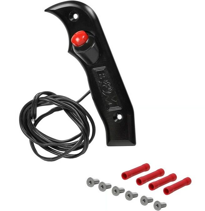 This high quality Stealth Magnum Grip side plate is constructed from CNC billet aluminum and has a 12V momentary button that can be used for activating a trans brake, two step ignition, line lock, NOS or other accessories. The black anodized finish not only looks good but features the B&M logo machined in the side and the wires are hidden in a machined channel in the shifter stick. This functional side grip plate with button will fit all B&M Magnum Grip Pro Stick, Pro Ratchet, Street Bandit or Pro Bandit shifters. Includes all necessary hardware for a quick installation.