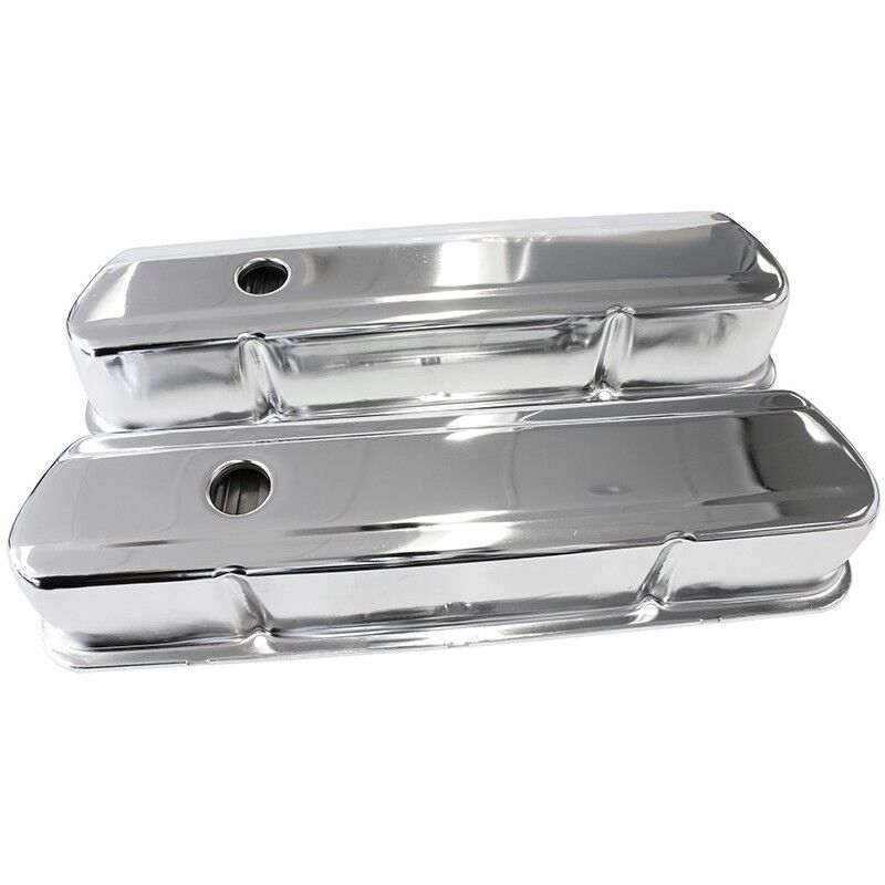 Designed for function and fashioned for great looks, Aeroflow’s Stamped ValveCovers have stock-style breather baffles that prevent oil passage to the PVC valve. Available in two great finishes; chrome plated and black electrolysis. Available with and without logo. Also comes with one 10.05mm (3/4”) ID and one 25.4mm(1”) ID rubber grommets to suit 31.5mm (1-1/4”) breather hole.