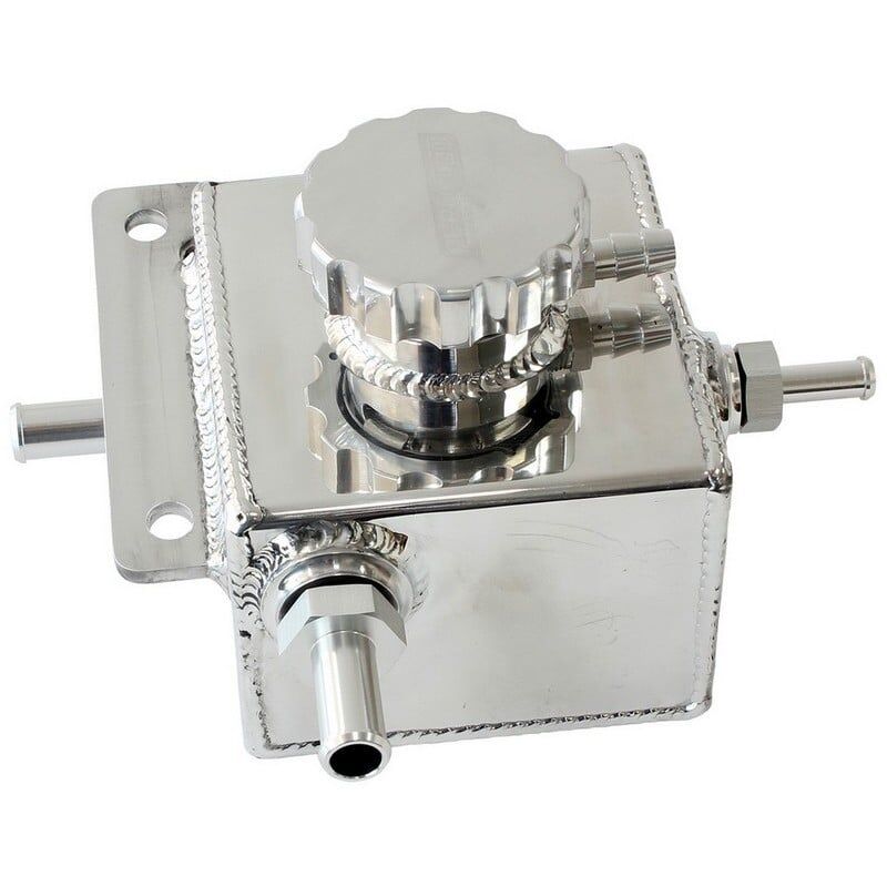 Aeroflow Performance has constructed this durable, TIG-welded aluminium coolant expansion tank for perfect fitment in the 2002-2007 WRX and the 2004-2016 STi. Stock coolant expansion tanks are prone to failure after years of constant temperature variations, the plastic material becomes brittle. Our Fabricated tank features barbed fittings and a 50% increase in capacity compared to factory. The barb fittings are removable and can be replaced for AN style fittings which are sold separately.
