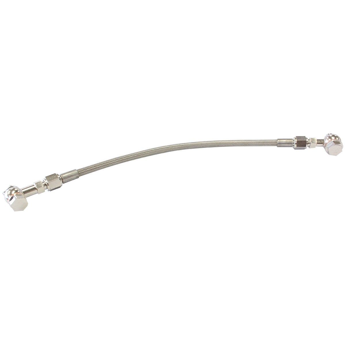 The Aeroflow Performance turbo oil feed line is designed to suit Subaru EJ20/EJ25 with standard or aftermarket turbochargers. This replaces the OEM Subaru turbo oil feed line which is a known weak point that can be easily damaged.  This -4an braided line option is great for those wanting to replace their turbo oil feed line with something that can be easily removed and installed. The banjo fittings are made from steel and coated in zinc for corrosion resistance. The braided lines are suited for a high temperature environment and feature a Teflon coated inner liner.
