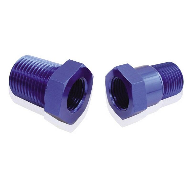 This adapter has an internal thread of 5/8"-18 UNFto suit Autometer mechanical temperature probes. There are three options for the outer thread - 3/8" NPT, 1/2" NPT and -10 ORB.
