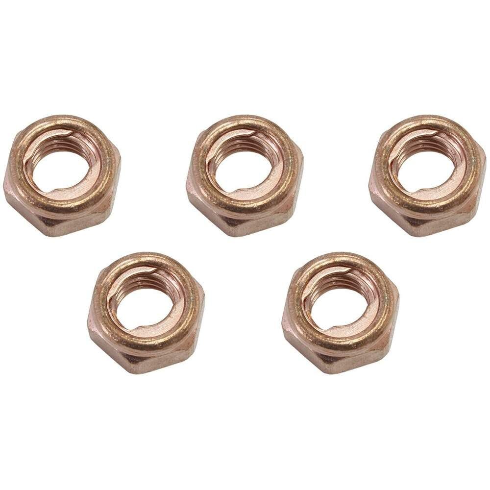 These copper locking nuts from Aeroflow are used inconjunction with our exhaust studs. The lock nut is just like a standard nut, but it has the added function of locking itself to the stud (thread). The main benefit of using lock nuts is once installed the chances of it working itself loose are greatly reduced.
