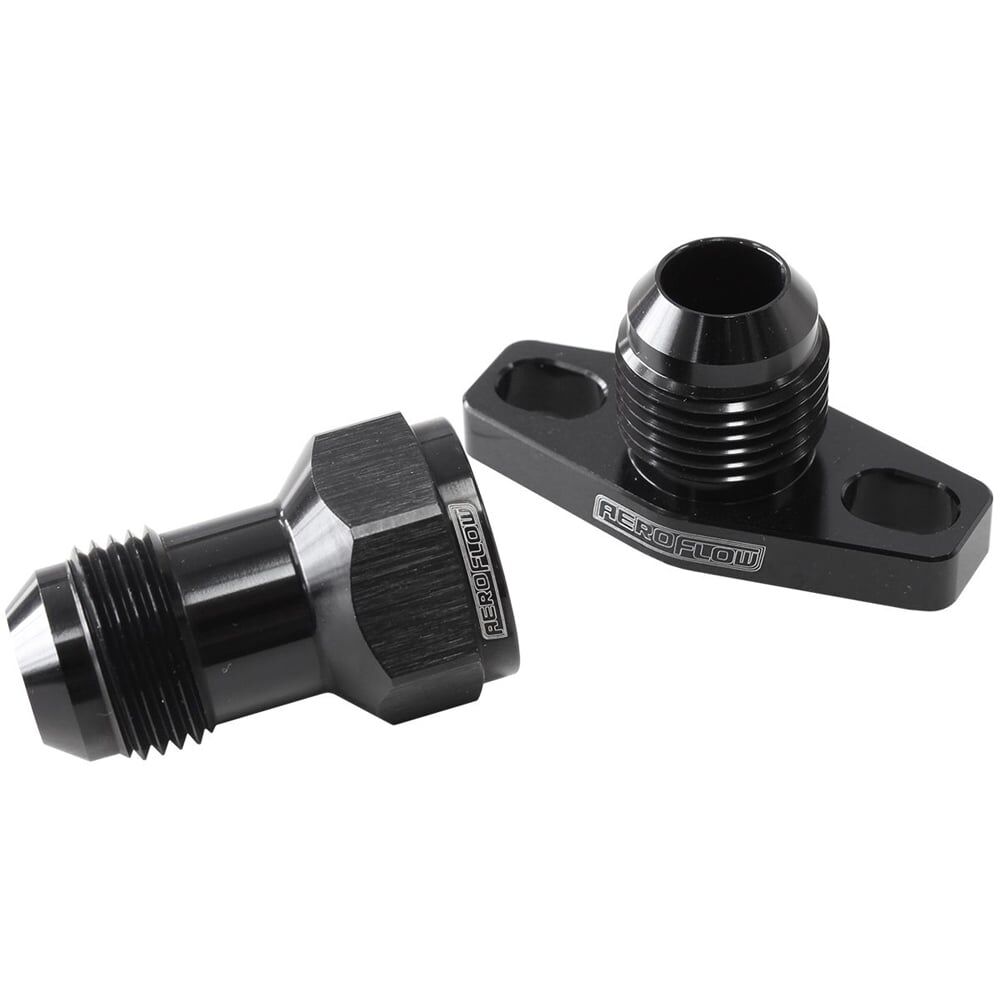 -10 AN male with 1.5" (38mm) tube with 38-44mm hole centres to suit turbos with 38mm bolt centres on core.