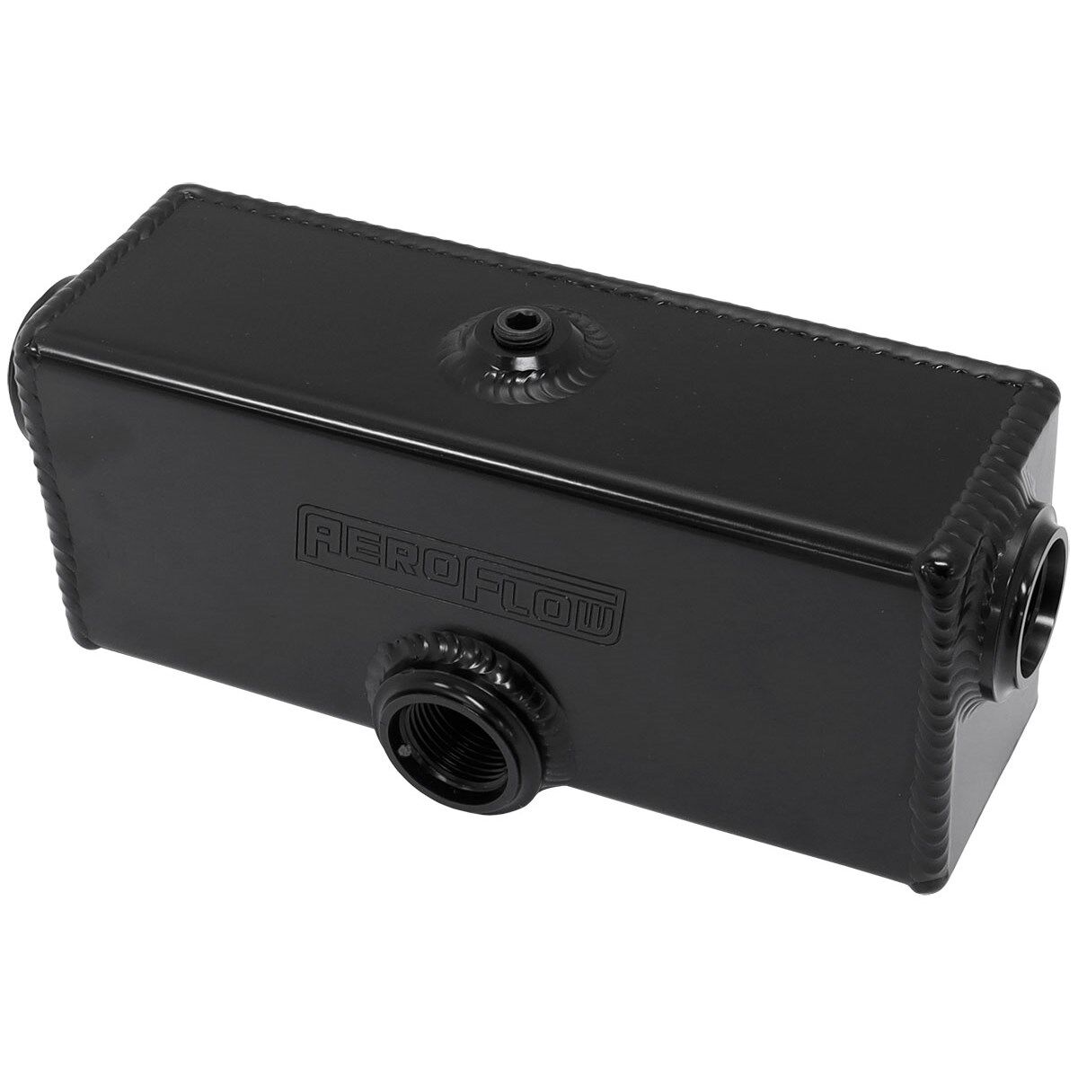 This neat little compact tank is specifically designed as a turbo oil drain scavenge drain tank or collector. This makes it a great tank for low mount turbocharger options or if you have a turbocharger installed in a location where a free flowing drain hose is not possible. This tank will allow oil to collect in this sump and you must have a oil scavenge pump (AF49-1200 sold separately) to draw the oil out of this tank and transfer it back to the engine sump. Each side of the tank has a female -12ORB which can be used as a inlet from the drainon the turbocharger. With a female -10ORB which will be the feed line for the scavengepump. Included on the top of this aluminium tank is a 1/8" NPT that is designedfor a vent line which is important to stop the oil fromaerating. As well as a 1/8" drain on the bottom of the tank if you require it to be emmptied from time to time