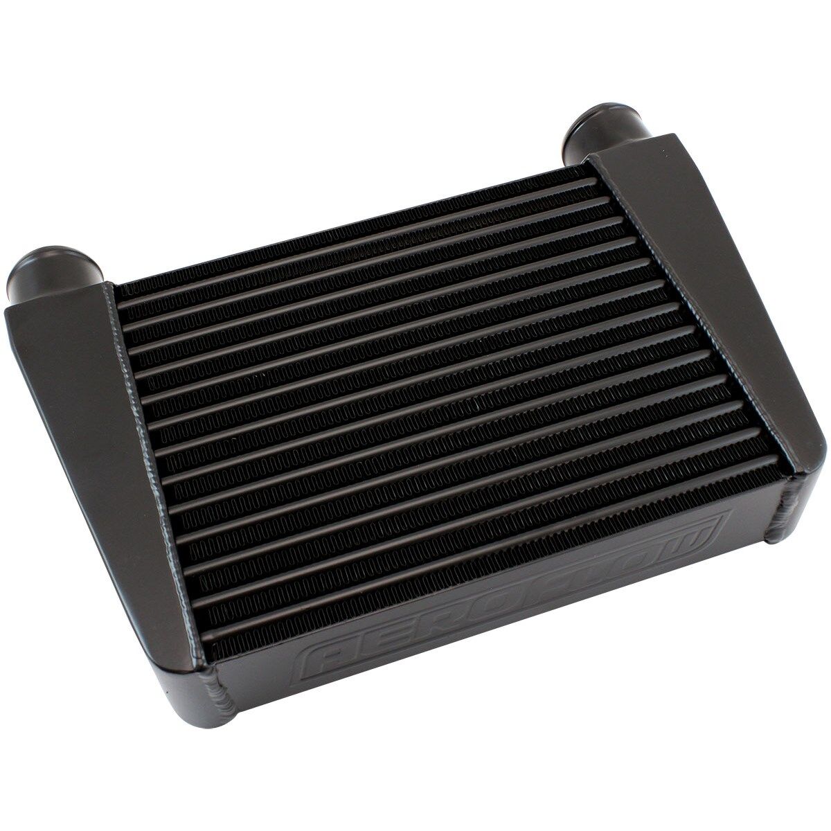 The Aeroflow Performance Street series intercoolers have become quite a popular choice amongst the automotive scene as they are known for their great value and top quality proving to exceed expectations at just a fraction of the price. These V-mount intercoolers are specifically designed for v mount applications or can be used in any universal applications where the intercooler can be mounted horizontal with the inlet and outlets on the top of the intercooler. Made from a durable alloy which is TIG welded. All intercoolers are pressure tested with a recommended maximum of 50psi (3.44 Bar). Aeroflow street series intercoolers are designed with a tube and fin core which offer a low pressure drop which helps withstability on turbo applications. They are available in one universal cores size with 63mm (2-1/2”) inlets and outlets that have a raised lipfor securing silicone hose. Each intercooler features two female M8x1.25mm mounting bosses and are available in silver or black powder coated finishes.