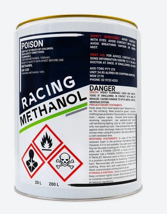 The highest quality Racing Methanol. AT Racing Fuels Methanol has a 99.5% purity level. It is used by some of the leading Pro Mod and Doorslammer drag racing teams in Australia.