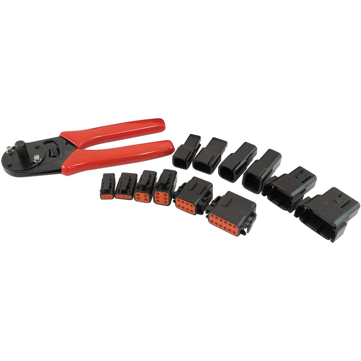 This WeatherTight DTM connector by Aeroflow Performance is sealed to give a high degree of environmental protection. It is a safe, reliable and versatile automotive electrical connector. Each connector contains a secondary wedge lock for maximum contract retention. Each pin accepts 20 AWG wire size and 7.5 amp rating. Each Kit includes 4 x 2 pin connectors, 4 x 3 pin connectors, 4 x 4 pin connectors, 2 x 6 pin connectors, 2 x 8 pin connectors, 2 x 12 pin connectors, 200 male/female pins, 25 cavity plugs and one crimp tool.