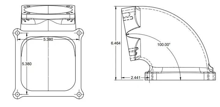 Wilson Manifolds' elbows incorporate a computer-optimized transition from the throttle body to the intake manifold plenum for maximum airflow and distribution.