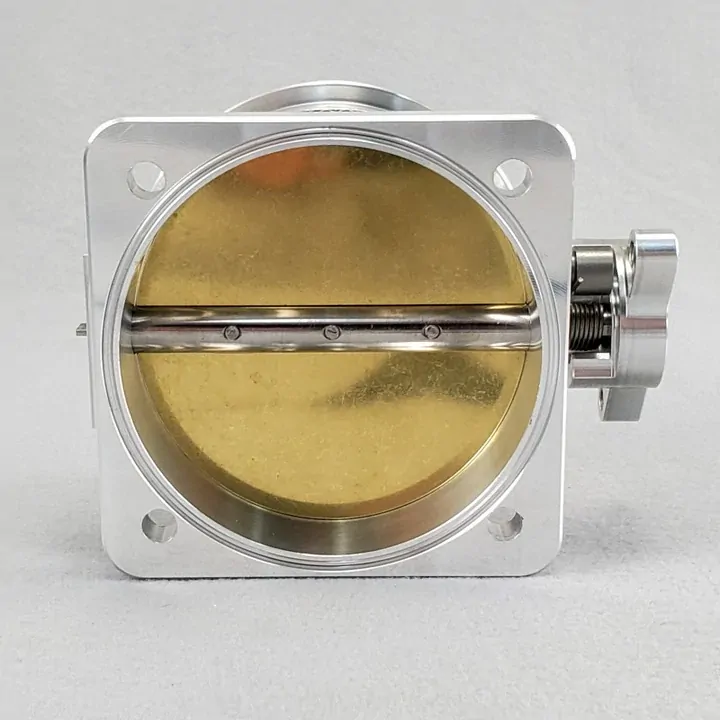 Wilson Manifolds High Flow Throttle Bodies were developed using the latest computer modeling software and test equipment available to produce designs that yield the maximum flow per square inch of cross-sectional area. This results in maximum power for any given throttle body type and size. All throttle bodies feature brass throttle blades to control vibration and reduce thermal expansion Throttle blades are fastened to the throttle shaft using aircraft quality hardware that is both Loctited and peened to assure positive retention of the blades. Throttle shafts are machined to decrease their cross-sectional area, which increases the actual cross-section available for airflow. All throttle bodies are machined from billet 6061-T6 aluminum on precision CNC machining centers for consistent quality and light weight. These high flow throttle bodies are available in sizes from 80mm, 90mm, 95mm, 105mm, and 123mm.