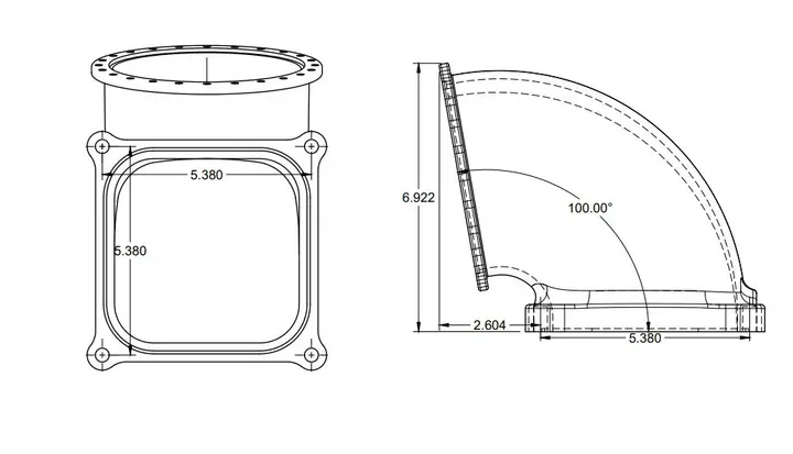 This elbow is designed to mate our 123mm billet throttle body (#471123V) to a 4500 series intake manifold. It utilizes a V-Band provision to mate the throttle body to the elbow. We offer the V-Band completion kit so that you can get the whole package in one place.