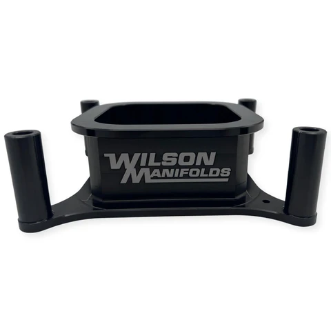 We offer the most complete line of 4-Hole Tapered spacers in 390, 4150, 4500, Q-Jet & 2bbl adapters to provide the high performance consumer with the ability to tune their engine for the maximum performance for any application. Wilson Manifolds is the only manufacturer to offer a choice of tapered spacer heights and produces the only fully CNC machined billet tapered spacer on the market. Wilson Manifolds Tapered spacers will benefit any vehicle that operates under both part and full throttle conditions such as bracket racing using a throttle stop, drag racing, circle track, road racing, off shore power boats, street/strip engines and towing vehicles.